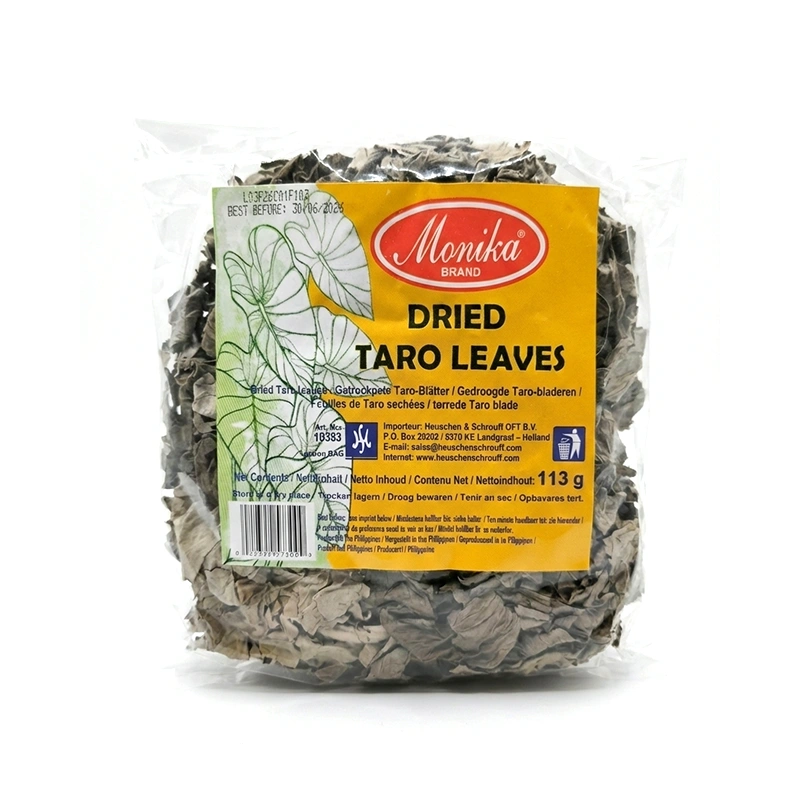 Frunzele uscate de taro Monika sunt utilizate în preparate tradiționale asiatice și africane, în special în supe, tocane și curry. Oferă o textură unică și o aromă discretă vegetală. Se rehidratează în apă înainte de utilizare.