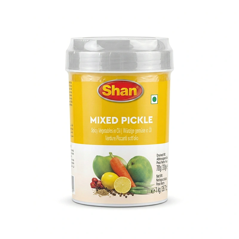 Legumele asortate murate în ulei Shan (Mixed Pickle) aduc o explozie de arome autentice pakistaneze direct în farfuria ta. Acest amestec picant de mango, morcov, lămâie și ardei iute, îmbogățit cu un mix complex de condimente orientale, oferă echilibrul perfect între acrișor și iute. Este acompaniamentul ideal pentru preparatele cu orez, curry-uri sau pur și simplu alături de o lipie caldă, adăugând profunzime și un plus de savoare oricărei mese.
