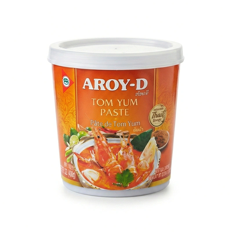 Pasta Tom Yum Aroy-D este baza esențială pentru a prepara acasă celebra supă thailandeză Tom Yum, rapid și autentic. Un amestec aromat și picant de lemongrass, galangal, ardei iute, sos de pește și frunze de lime Kaffir. Această pastă concentrată oferă echilibrul perfect între iute, acru și sărat, specific bucătăriei thailandeze. Poate fi folosită și ca marinadă pentru fructe de mare sau carne de pui.